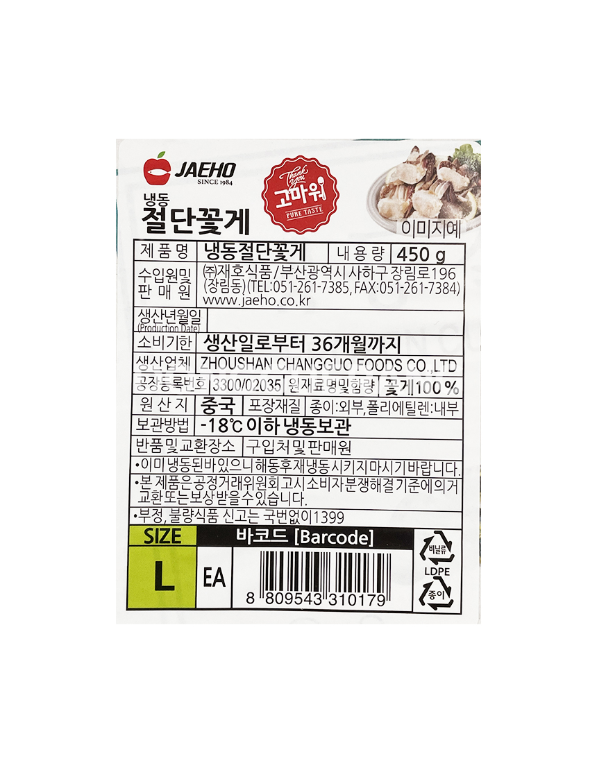³Ãµ¿ Àý´Ü²É°Ô (L»çÀÌÁî) 450g ²É°Ô/³Ãµ¿/Àý´Ü/ÇØ»ê¹°