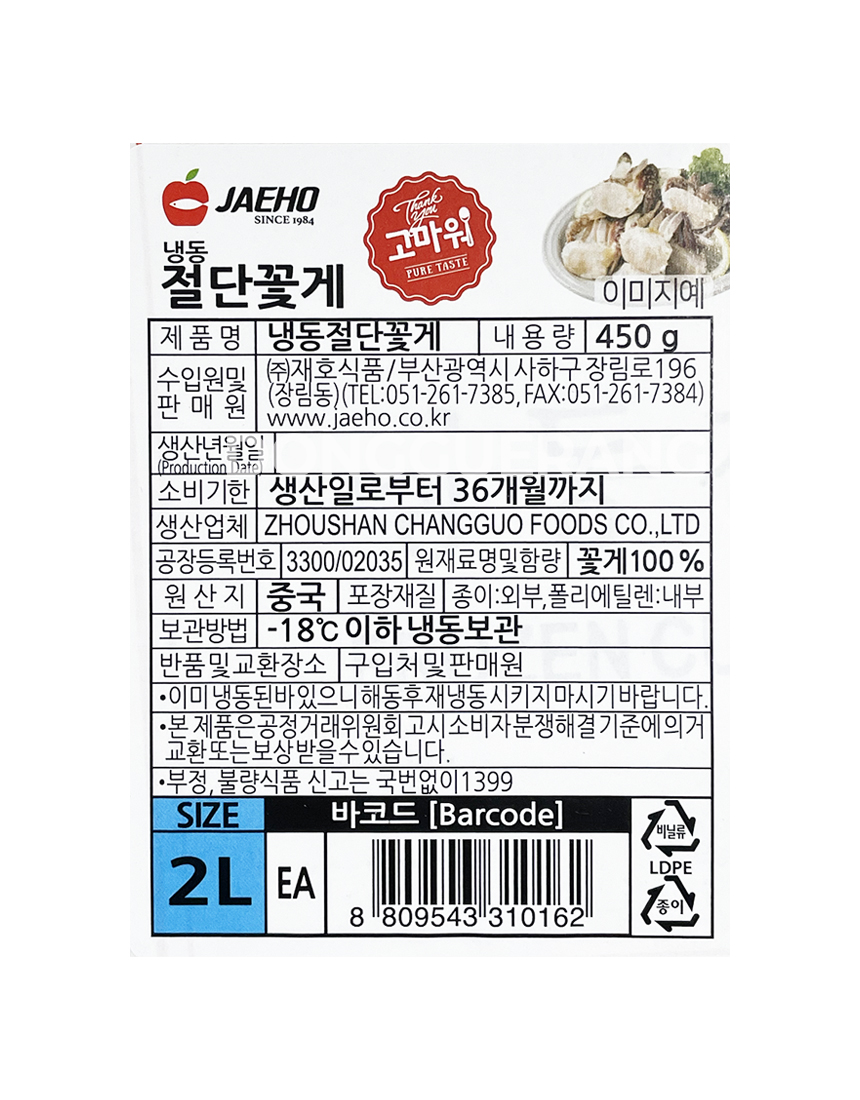 ³Ãµ¿ Àý´Ü²É°Ô (2L»çÀÌÁî) 450g ²É°Ô/³Ãµ¿/Àý´Ü/ÇØ»ê¹°/LL»çÀÌÁî